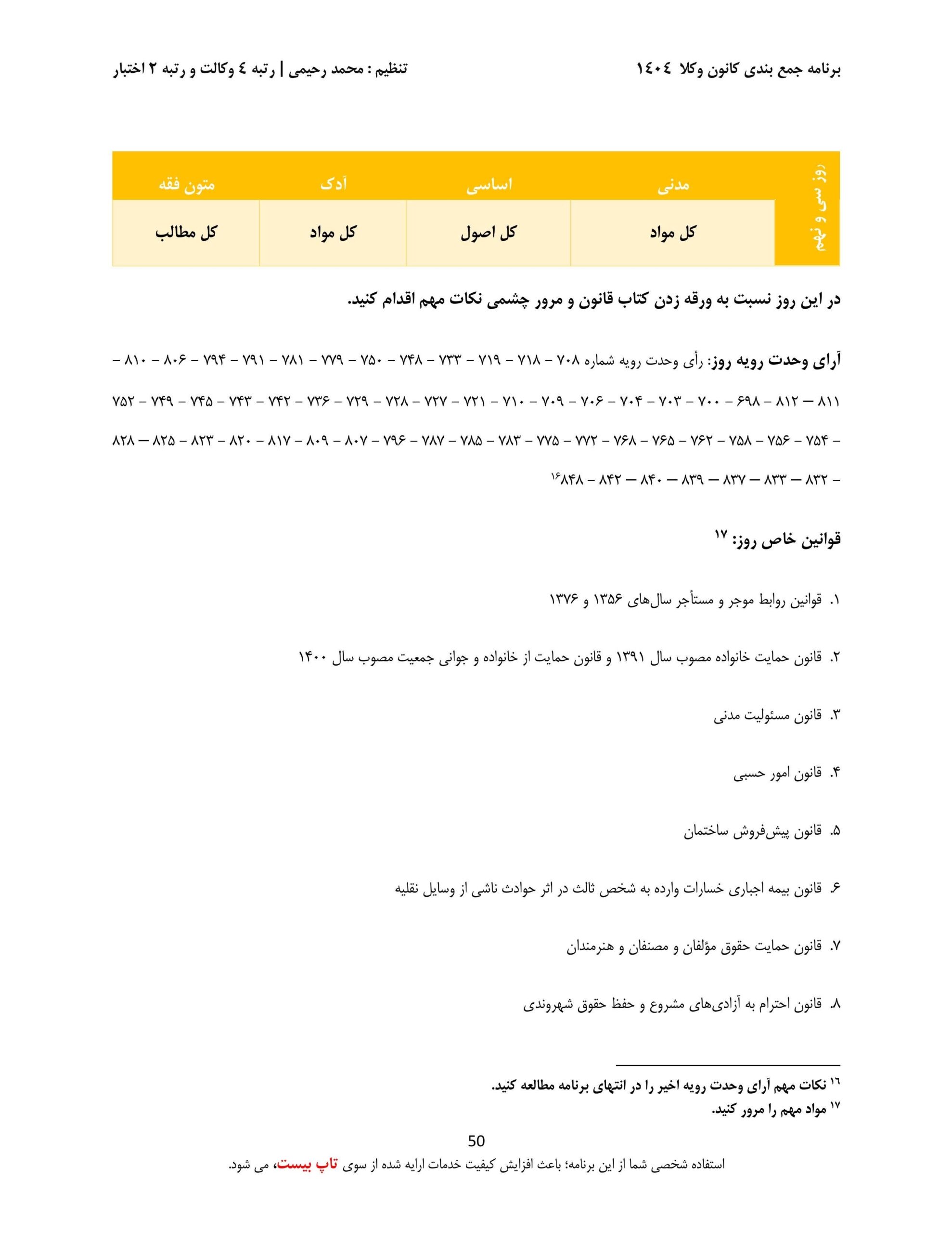 برنامه جمع بندی آزمون کانون وکلا ۱۴۰۴